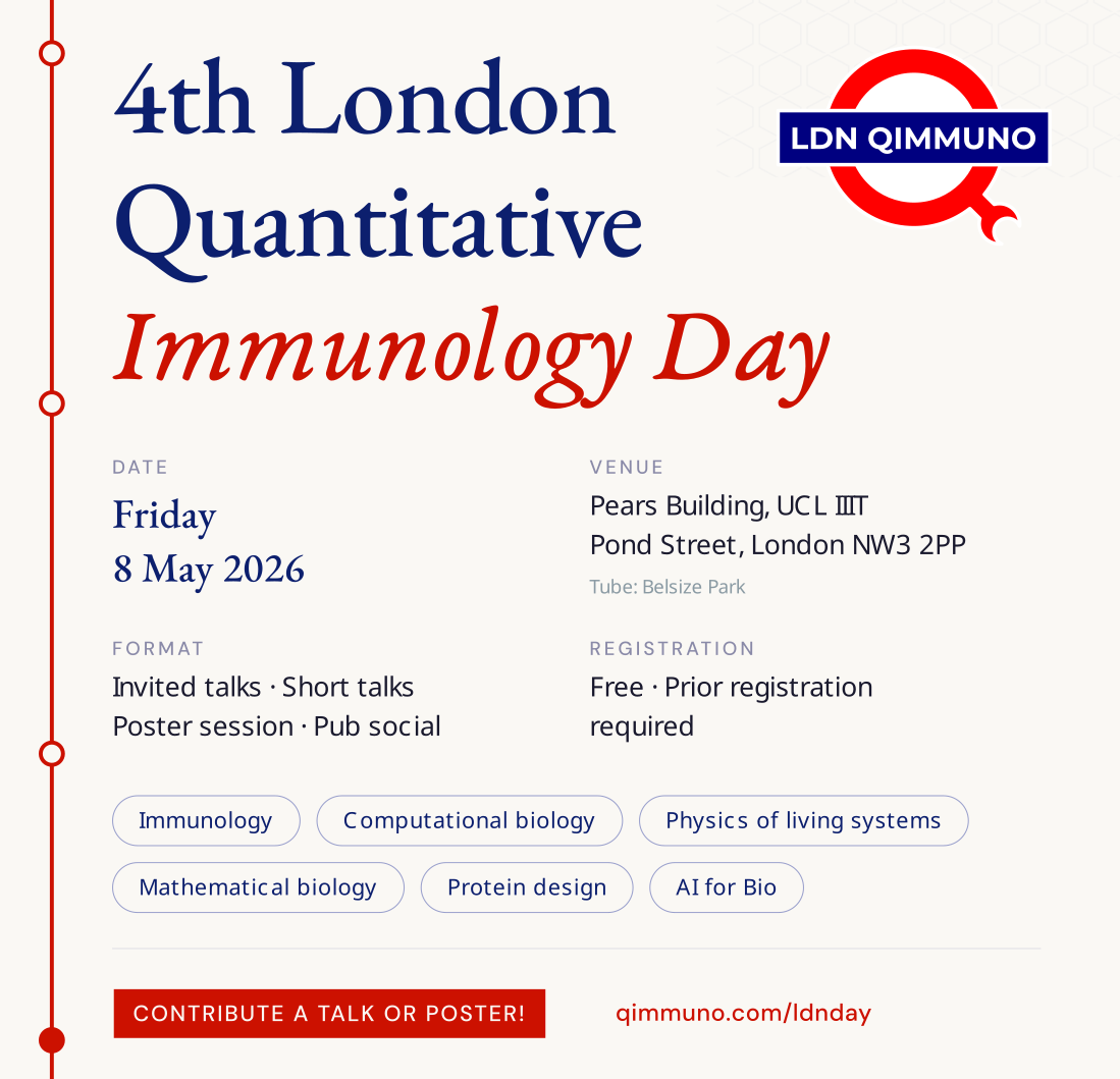 It is part of a series of events organised by the informal London Quantitative Immunology Network. Please join our mailing list!